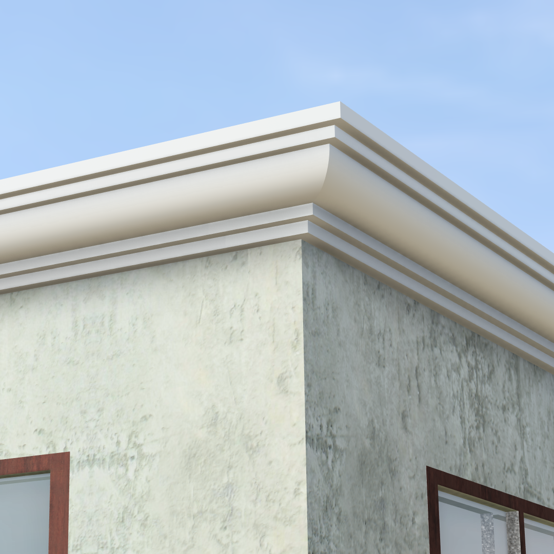 Moldura cubierta con malla de fibra de vidrio y revestida con cemento.